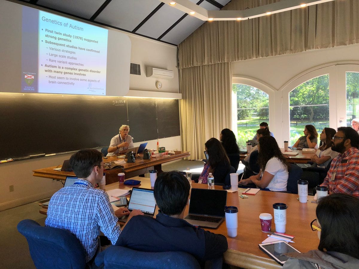 Here’s a photo of Fred Volkmar giving a presentation to the Cold Spring Harbor Laboratory Autism Meeting in 2019: