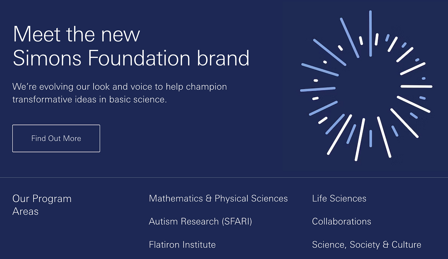 Then I went over the website of the Simons Foundation. And they are in the midst of a massive rebranding.