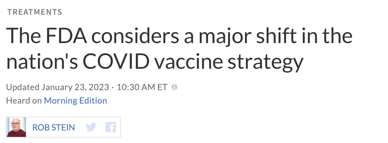 On Monday, the FDA through its various PR firms announced a “major shift” — that is actually just implementing the plan that they have had for a year — to make Covid shots annual like the failed flu shot program.